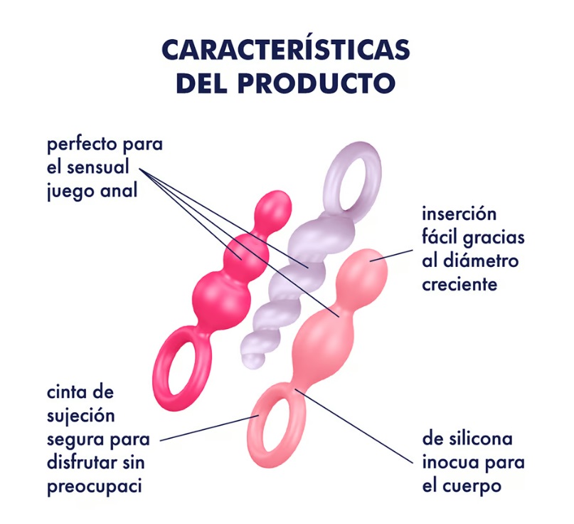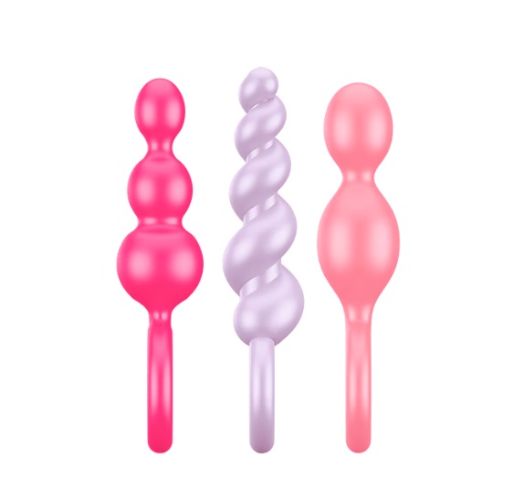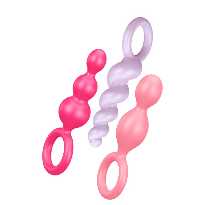 Con 3 estructuras diferentes, el Satisfyer Booty Call Set es ideal para principiantes en el entrenamiento anal. Los tapones anales ofrecen un diámetro creciente, para que el ano se estire suavemente y así puedas abrir su camino con total precaución. Es difícil superar a los tapones en cuanto a versatilidad: puedes elegir entre el diseño en espiral, la forma cónica estrecha y la clásica estructura esférica de 3 elementos. Los 3 diseños convencen por su superficie lisa y flexible de silicona suave, higiénica e inofensiva para el cuerpo. El muy práctico anillo de retención simplifica la inserción de este accesorio anal y garantiza un uso sin complicaciones. Además, el anillo funciona como una base amplia que impide la inserción completa de los plugs anales, para que puedas dedicarte al entrenamiento anal sin preocupaciones.